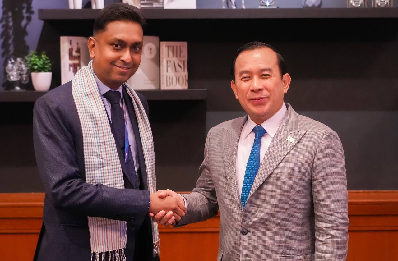 (ម៉ាឡេស៊ី)៖ នាឱកាសនៃកិច្ចប្រជុំចង្អៀតរដ្ឋមន្ត្រីទេសចរណ៍អាស៊ានដែលប្រព្រឹត្តទៅនៅទីក្រុងម៉ាឡាកា, លោក ហួត ហាក់ រដ្ឋមន្ត្រីក្រសួងទេសចរណ៍ បានដឹកនាំគណៈប្រតិភូជាន់ខ្ពស់ក្រសួងទេសចរណ៍ និងវិស័យឯកជន ជួបពិភាក្សាការងារជាមួយលោក Dersenish Aresandiran តំណាងក្រុមហ៊ុនអាកាសចរណ៍ Malaysia Airlines នៅថ្ងៃទី៣០ ខែកញ្ញា ឆ្នាំ២០២៥ នារាជធានីកូឡាឡាំពួ ប្រទេសម៉ាឡេស៊ី។