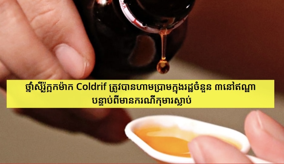 (ញូវដេលី)៖ យ៉ាងហោចណាស់រដ្ឋចំនួន ៣ នៅក្នុងប្រទេសឥណ្ឌា បានហាមប្រាមការទទួលទានថ្នាំស៉ីរ៉ូក្អកម៉ាក Coldrif បន្ទាប់ពីមានករណីស្លាប់កុមារច្រើននាក់ ក្រោយប្រើប្រាស់ផលិតផលនេះ។ នេះបើយោងតាមការចេញផ្សាយដោយទីភ្នាក់ងារសារព័ត៌មាន Reuters នៅថ្ងៃចន្ទ ទី៦ ខែតុលា ឆ្នាំ ២០២៥។