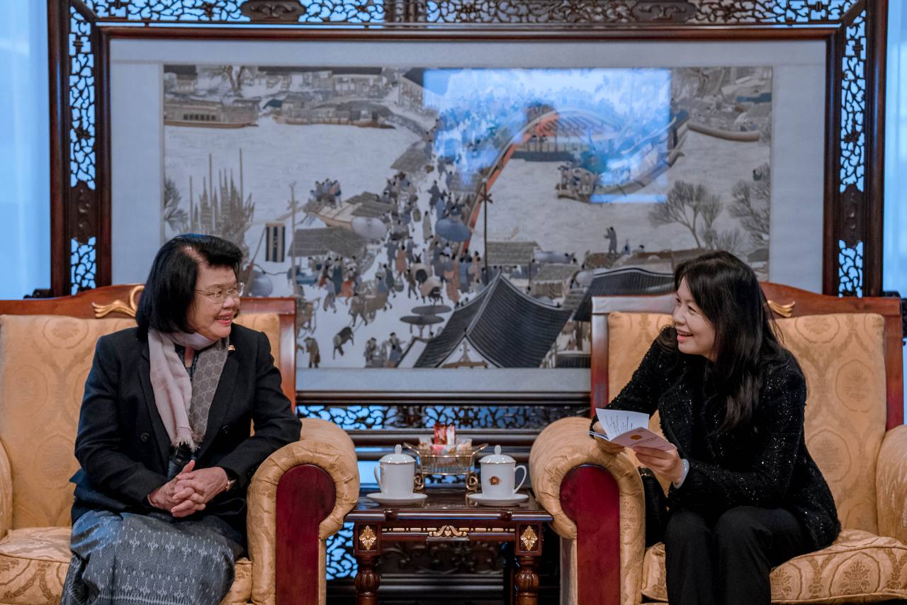 នៅព្រលានយន្តហោះអន្តរជាតិទីក្រុងប៉េកាំង លោកស្រី ហ៊ូ វិន (Hun Wen) អគ្គនាយករងកិច្ចការបរទេស នៃសភាតំណាងប្រជាជនចិន បានសម្តែងនូវកិច្ចស្វាគមន៍យ៉ាងរាក់ទាក់កក់ក្តៅជាទីបំផុត ចំពោះសម្តេចប្រធាន និងបានវាយតម្លៃខ្ពស់ចំពោះវត្តមានរបស់សម្តេចប្រធាន ក្នុងកិច្ចប្រជុំថ្នាក់ដឹកនាំកំពូលស្រ្តីថា ពិតជាមានសារៈសំខាន់ និងមានតម្លៃធំធេង។ លោកជំទាវក៏បានជម្រាបជូនសម្តេចប្រធានអំពីកម្មវិធីសំខាន់នានា ដែលសភាតំណាងប្រជាជនចិនបានរៀបចំជូនសម្តេចរដ្ឋសភាធិបតី ក្នុងនោះមានការអញ្ជើញថ្លែងសុន្ទរកថានៅក្នុងកិច្ចប្រជុំពេញអង្គ នៃកិច្ចប្រជុំថ្នាក់ដឹកនាំកំពូលស្តីពីស្រ្តី ជំនួបពិភាក្សាទ្វេភាគីជាមួយ ឯកឧត្តម ចាវ ឡឹជី (Zhao Leji) ប្រធានសភាតំណាងប្រជាជនចិន និងការធ្វើបទសម្ភាសន៌ជាមួយទស្សនាវដ្តីសភាតំណាងប្រជាជនចិនជាដើម។
