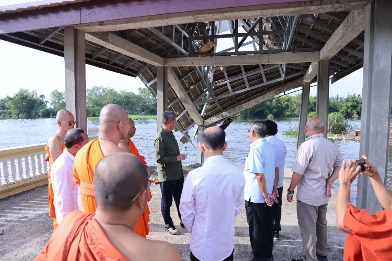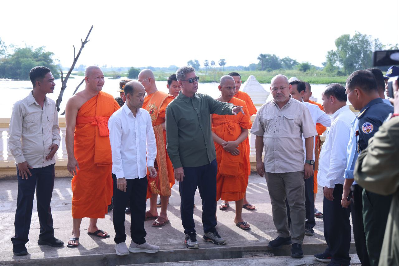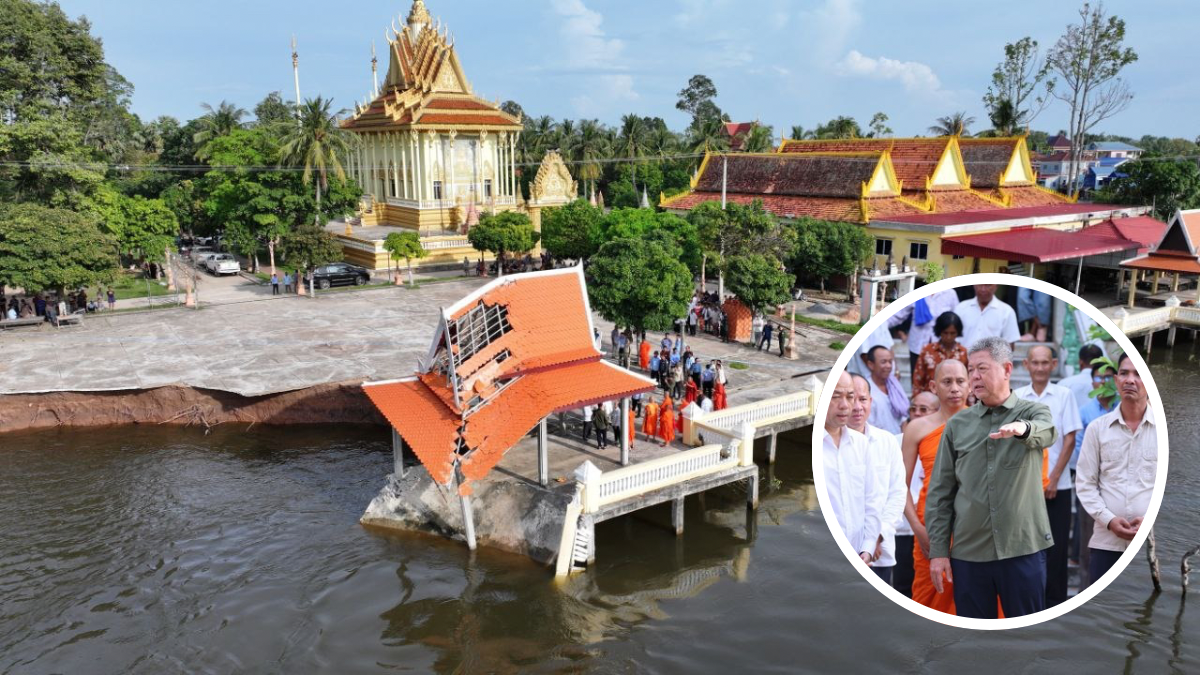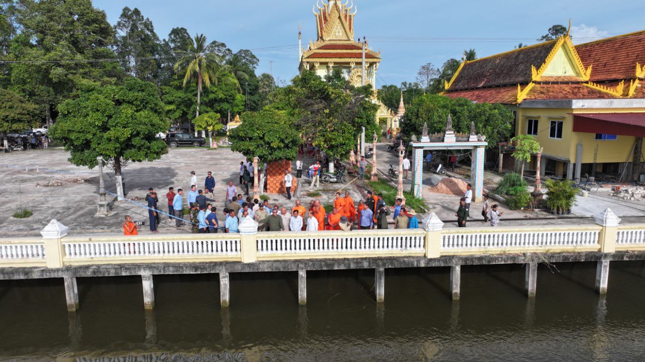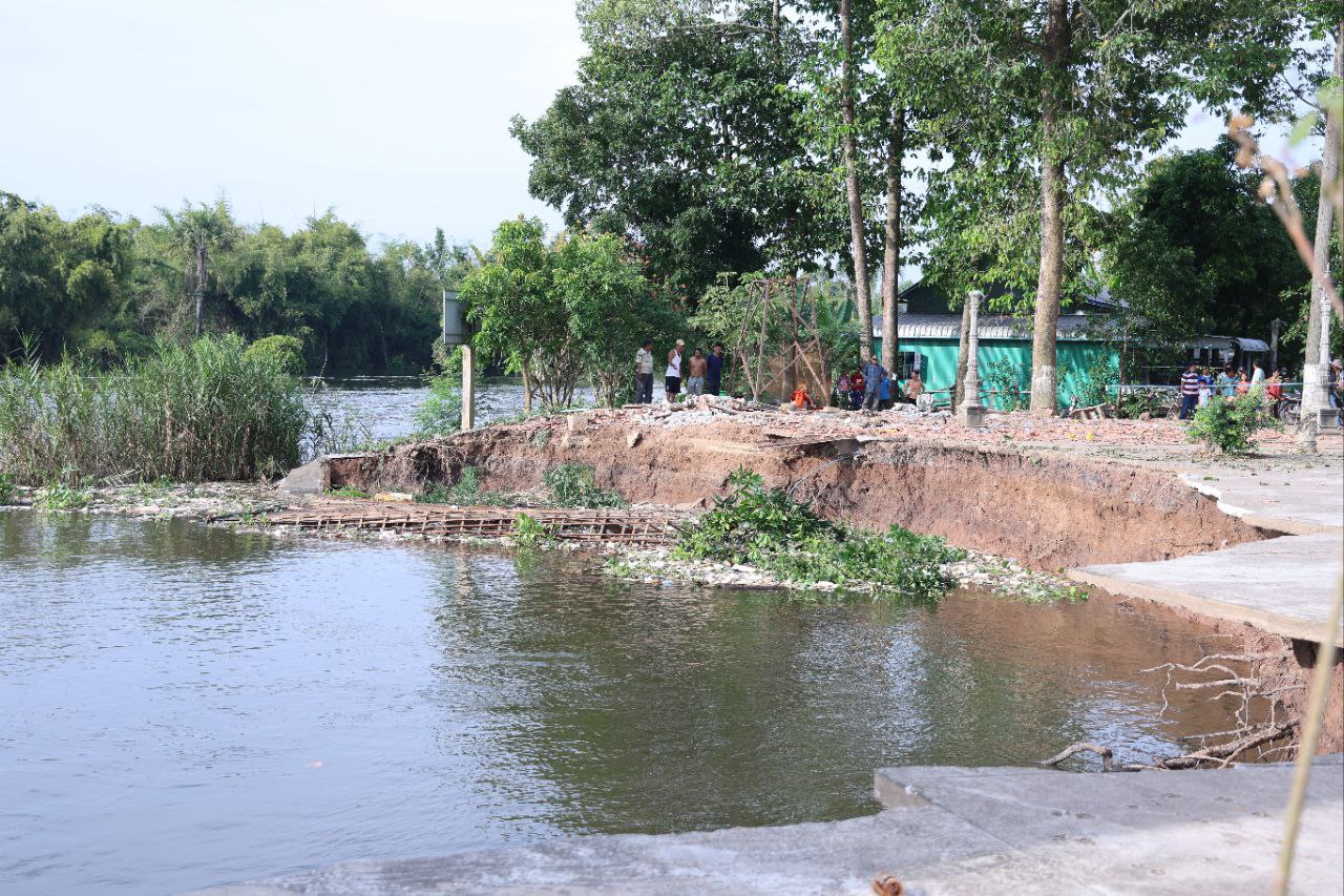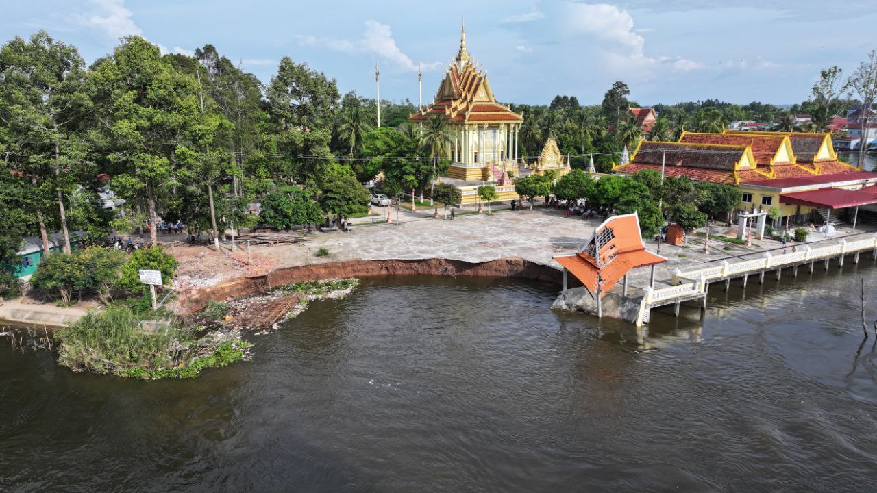 ខេត្តកណ្តាល៖ ច្រាំងមាត់ស្ទឹង ស្ថិតក្នុងឃុំលើកដែក រងការបាក់ស្រុត បណ្តាលមកពីទឹកទន្លេមេគង្គ និងទឹកទន្លេបាសាក់ហូរចូលតាមព្រែកលើកដែក មកប្រសព្វត្រង់ចំណុចមុខវត្តជ្រោយស្ថិតនៅក្នុងភូមិសាស្ត្រស្រុកកោះធំ នារសៀលថ្ងៃទី២១ ខែតុលា ឆ្នាំ២០២៥នេះត្រូវបាន ឯកឧត្តមគួច ចំរើន អភិបាល នៃគណៈអភិបាលខេត្តកណ្តាល ដឹកនាំមន្ទីរជំនាញ មន្ត្រីបច្ចេកទេស អាជ្ញាធរដែនដី ព្រះសង្ឃ និងប្រជាពលរដ្ឋចំណុះជើងវត្ត ចុះពិនិត្យជាក់ស្តែងទីតាំងមាត់ស្ទឹងលើកដែកដែលរងការបាក់ច្រាំង នៅចំណុចវត្តជ្រោយ ភូមិអន្លង់ស្លាត ឃុំលើកដែក ស្រុកកោះធំខេត្តកណ្តាល។