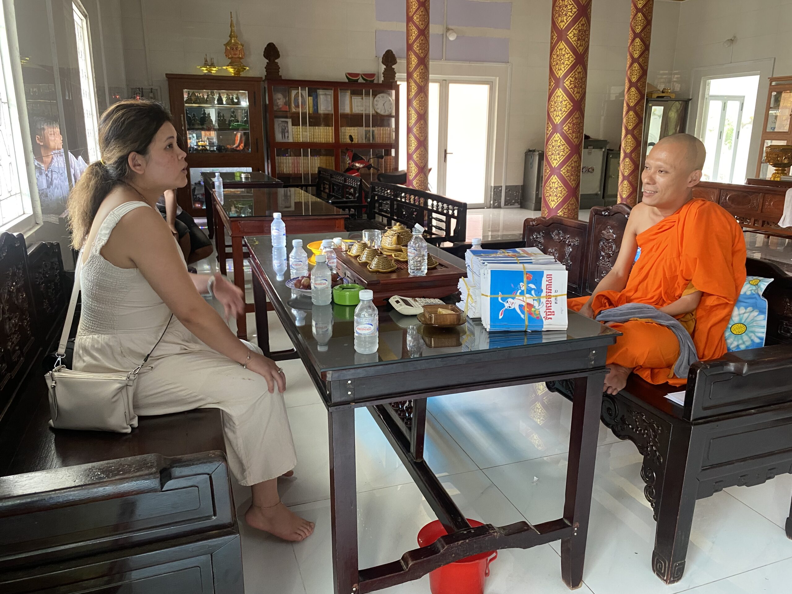 កម្ពុជាក្រោមៈ  លោកស្រី សុបិន្ត អ៊ុង ស្ថាបនិកសារព័ត៌មានខ្មែរប៉ុស្តិ៍ស.រ.អា និងស្វាមី ព្រមទាំងកូនស្រីម្នាក់ដែលមានអាយុទើបតែ៣ឆ្នាំ បានធ្វើដំណើរពីសហរដ្ឋអាមេរិកមកលេងស្រុកកំណើតស្ថិតនៅភូមិបាឆាវ ឃុំថ្កូវ ស្រុកបាឆាវ ខេត្តព្រះត្រពាំង  ក្នុងនោះលោកស្រីក៏បាននាំយកអំណោយដែលសមាគមខ្មែរកម្ពុជាក្រោម Association New England បានផ្តល់ជាអំណោយតាមរយៈលោកស្រីចំនួន២០០ដុល្លារ ជាវសៀវភៅមត្តេយ្យភាសាខ្មែរនៅវត្តស្វាយសៀមថ្មី ចំនួន១២០ក្បាល យកទៅប្រគេនព្រះសង្ឃ២វត្ត (ក្នុងមួយវត្ត៦០ក្បាល) គឺវត្តបាឆាវ និងវត្តថ្កូវ ស្ថិតក្នុងស្រុកបាឆាវ ខេត្តព្រះត្រពាំង ។