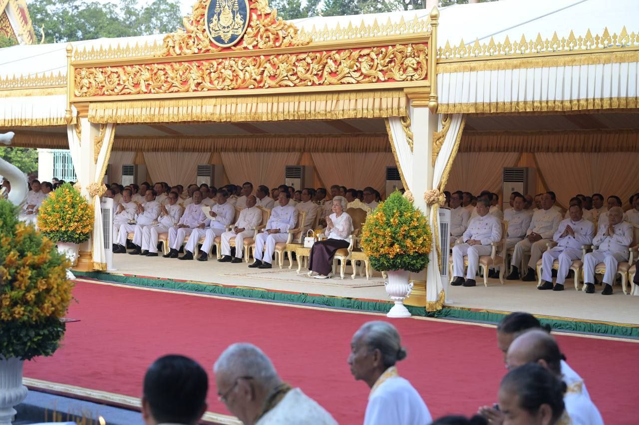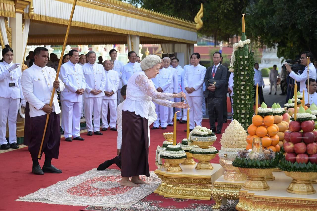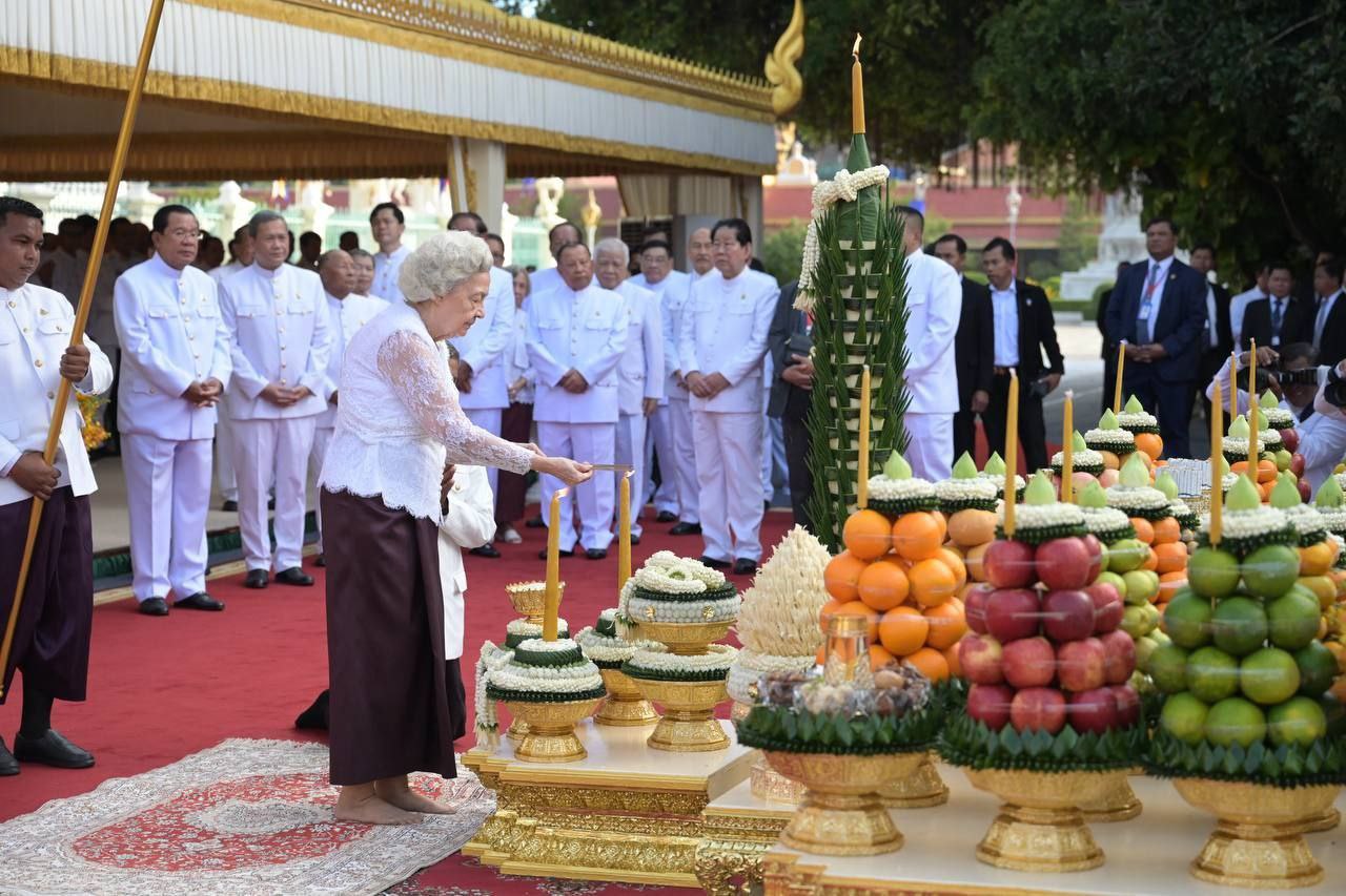 សម្ដេចព្រះមហាក្សត្រី ព្រះរាជតំណាងដ៏ខ្ពង់ខ្ពស់បំផុតរបស់ព្រះមហាក្សត្រ ស្តេចយាងជាព្រះរាជាធិបតី ក្នុងព្រះរាជពិធីបួងសួងសូមចម្រើនសេចក្តីសុខ និងភាពសម្បូរសប្បាយដល់កម្ពុជា នៅព្រះបរមរាជវាំង