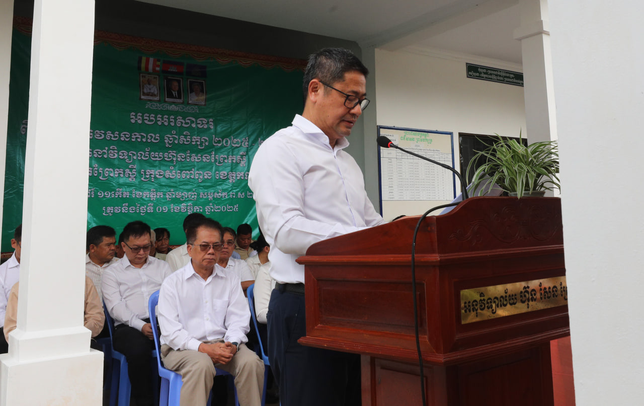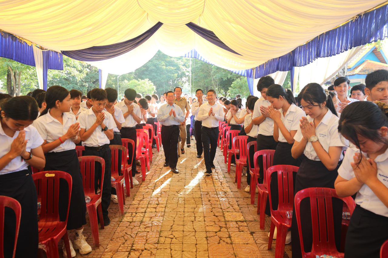 ការអំពាវនាវយ៉ាងដូច្នេះរបស់លោកសាស្ដ្រាចារ្យ ក្នុងពិធីបើកបវេសនកាលឆ្នាំសិក្សាថ្មី២០២៥-២០២៦ នៅវិទ្យាល័យ ហ៊ុន សែន ព្រែកស្តី នៅព្រឹកថ្ងៃទី ១ ខែវិច្ឆិកា ឆ្នាំ២០២៥ ដោយមានការអញ្ជើញចូលរួមពីលោក អេង សុវិចិត្រ អភិបាលនៃគណៈអភិបាលក្រុងសំពៅពូន លោក រ័ត្ន ជំនិត អនុប្រធានក្រុមការងាររាជរដ្ឋាភិបាលចុះមូលដ្ឋានក្រុងសំពៅពូន និង លោក លោកស្រី អនុប្រធាន និងសមាជិក សមាជិកាក្រុមការងាររាជរដ្ឋាភិបាលចុះមូលដ្ឋានសង្កាត់ព្រែកស្តី។