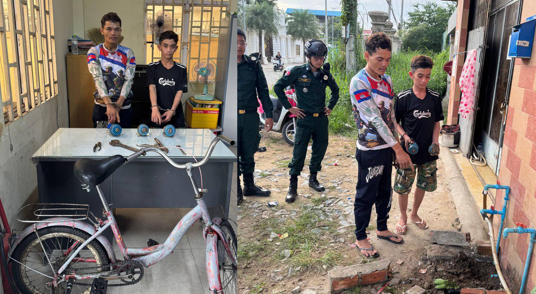 ភ្នំពេញ ៖ សមត្ថកិច្ចខណ្ឌឬស្សីកែវបើកប្រតិបត្តិការណ៍ស្រាវជ្រាវបង្ក្រាបឃាត់ខ្លួនជនសង្ស័យ២នាក់ ក្រោយពួកគេនាំគ្នាជិះកង់ដើរលួចនាឡិកាទឹកតាមផ្ទះប្រជាពលរដ្ឋ។ ករណីឃាត់ខ្លួននេះ ធ្វើឡើងកាលពីរសៀលថ្ងៃទី០១ ខែវិច្ឆិកា ឆ្នាំ២០២៥ នៅចំណុចផ្លូវបេតុង ភូមិស្ពាន់ខ្ពស់ សង្កាត់គីឡូម៉ែតលេខ៦ ខណ្ឌឬស្សីកែវ រាជធានីភ្នំពេញ។
