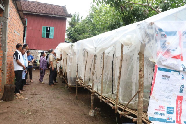 កំពង់ធំ៖ លោក ហាក់ ម៉ុងហួត អភិបាលស្រុកតាំងគោក នាព្រឹកថ្ងៃទី០២ ខែវិច្ឆិកា ឆ្នាំ២០២៥នេះ បានដឹកនាំមន្ត្រីចុះពិនិត្យជាក់ស្តែងលើសកម្មភាពចិញ្ចឹមកណ្តូបបន្ថែមពីលើមុខរបរប្រចាំថ្ងៃ របស់ប្រជាកសិករចំនួន៥៣គ្រួសារ នៅក្នុងភូមិទោង ឃុំស្រឡៅ ស្រុកតាំងគោក ខេត្តកំពង់ធំ ដែលបានចិញ្ចឹមចំនួនជិត១០០ទ្រុង ដើម្បីរកចំនូលបន្ថែមសម្រាប់ទ្រទ្រង់ដល់ជីវភាពប្រចាំថ្ងៃ។