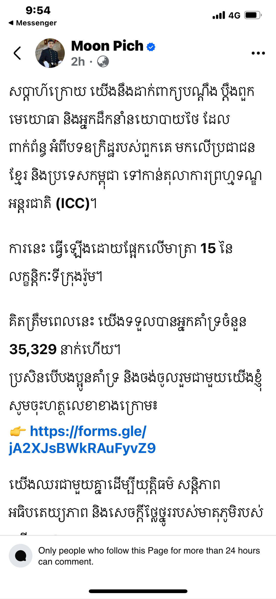 គិតត្រឹមពេលនេះ យើងទទួលបានអ្នកគាំទ្រចំនួន 35,329 នាក់ហើយ។