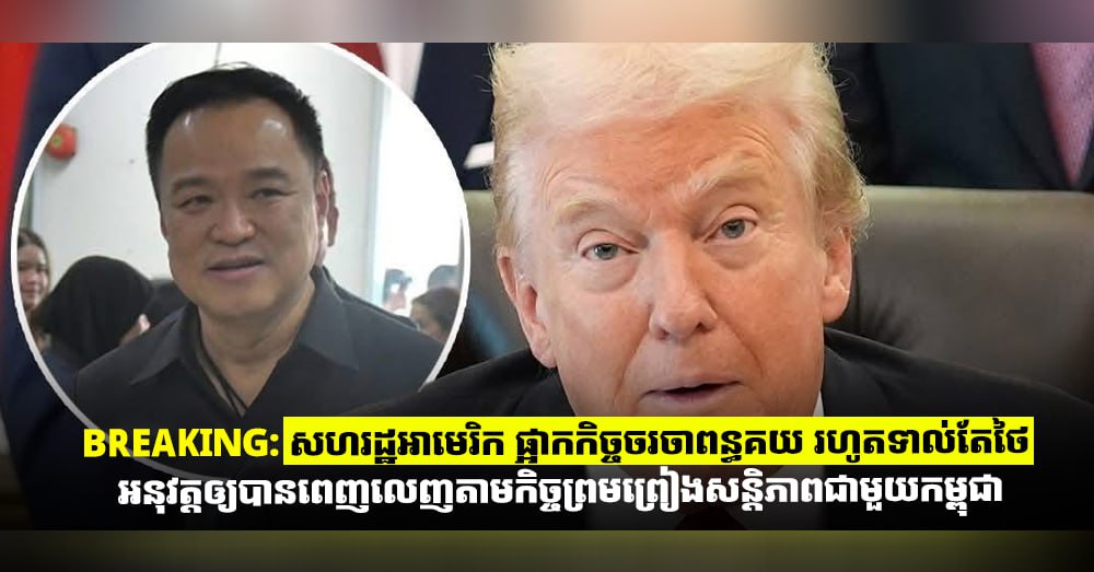 សហរដ្ឋអាមេរិក ផ្អាកកិច្ចចរចាពន្ធគយ រហូតទាល់តែថៃ អនុវត្តឲ្យបានពេញលេញតាមកិច្ចព្រមព្រៀងសន្តិភាពជាមួយកម្ពុជា