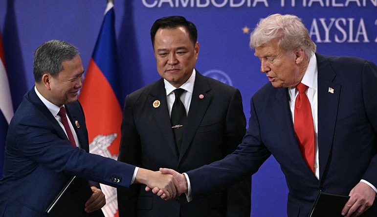 វ៉ាស៊ីនតោន ៖ ប្រធានាធិបតីអាមេរិក លោក ដូណាល់ ត្រាំ បាននិយាយថាប្រទេសកម្ពុជា និងថៃ បានយល់ព្រមបញ្ឈប់ការបាញ់ប្រហារគ្នាទាំងអស់ដែលចូលជាធរមាន កាលពីថ្ងៃសុក្រ ទី១២ ខែធ្នូ បន្ទាប់ពីបានបើកកិច្ចសន្ទនាតាមទូរស័ព្ទជាមួយមេដឹកនាំនៃប្រទេសទាំង២ ដើម្បីសង្រ្គោះបទឈប់បាញ់ដែលលោកផ្ទាល់ជាសម្របសម្រួល កាលពីខែតុលាកន្លងទៅ។ នេះបើតាមការចេញផ្សាយដោយទីភ្នាក់ងារសារព័ត៌មាន Reuters ចេញផ្សាយនៅថ្ងៃទី១៣ ខែធ្នូ ឆ្នាំ២០២៥។