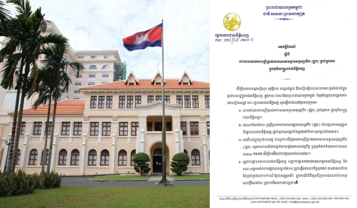 ទី១៖ ហាមដាច់ខាតការប្រើប្រាស់អាកាសយានគ្មានមនុស្សបើក (ដ្រូន) គ្រប់ប្រភេទ ក្នុងភូមិសាស្ត្រ រាជធានីភ្នំពេញ
