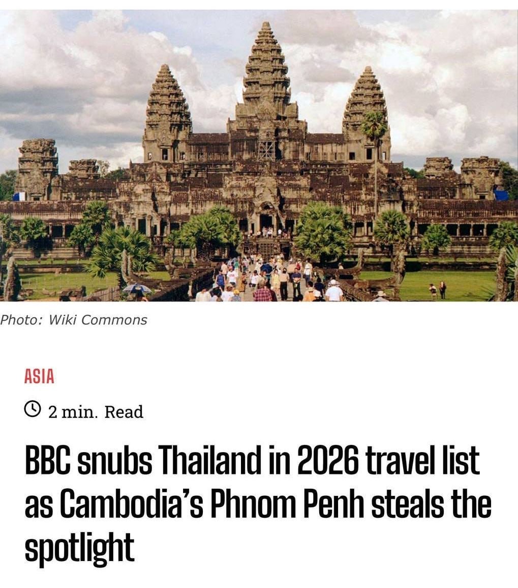 (ភ្នំពេញ)៖ ជារឿងគួរឲ្យភ្ញាក់ផ្អើល សម្រាប់ការធ្វើដំណើរកម្សាន្តនៅអាស៉ីអាគ្នេយ៍។ នោះគឺថៃ ដែលជាប្រទេសធ្លាប់ជាប់ចំណាត់ថ្នាក់ ក្នុងបញ្ជីគោលដៅទេសចរណ៍ពិភពលោកអស់ពេលដ៏យូរ មិនជាប់ក្នុងបញ្ជី «គោលដៅទេសចរណ៍ដ៏ល្អបំផុត ចំនួន២០ សម្រាប់ឆ្នាំ២០២៦» របស់បណ្តាញព័ត៌មានខ្នាតយក្ស BBC នោះទេ។ ផ្ទុយមកវិញ ចំណាត់ថ្នាក់ទាំង២០ គឺប្រទេសថៃត្រូវបានជំនួសដោយកម្ពុជា ខណៈរាជធានីភ្នំពេញ ក្លាយជាទីតាំងដ៏ទាក់ទាញ។ នេះបើតាមការផ្សាយដោយសារព័ត៌មាន Independent នៅថ្ងៃទី២ ខែមករា ឆ្នាំ២០២៦។