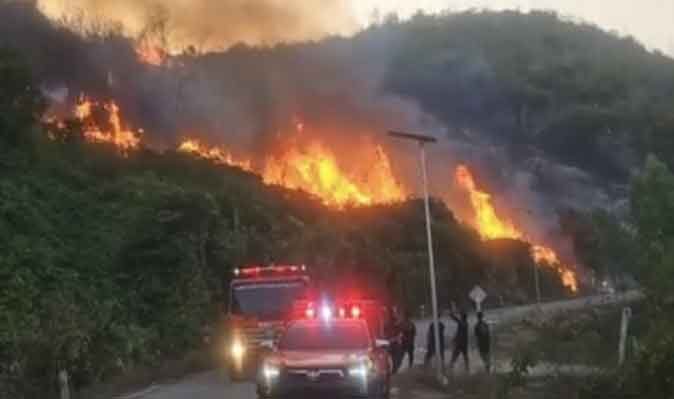 អគ្គិភ័យបានឆាបឆេះភ្នំ Samae San នៅប្រទេសថៃ ទាំងមិនដឹងមូលហេតុ ខណៈហេតុការណ៍នេះធ្វើឲ្យពលរដ្ឋភ័យស្លន់ស្លោ រត់ចេញពីលំនៅដ្ឋាន ខ្លាចភ្លើងរាលដាលដល់ផ្ទះរបស់ពួកគេ។