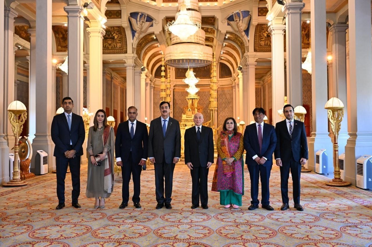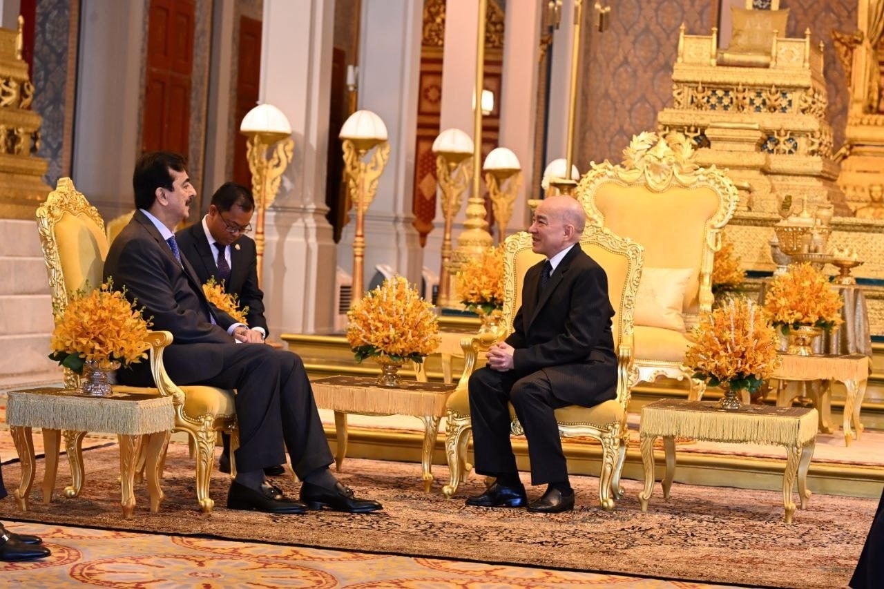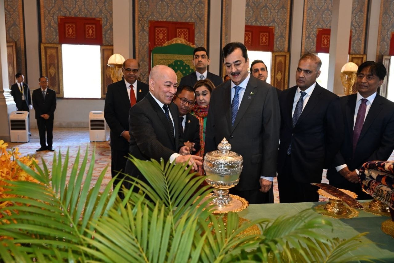 (ភ្នំពេញ)៖ នៅព្រឹកថ្ងៃទី៣ ខែកុម្ភៈ ឆ្នាំ២០២៦នេះ លោក ស៊ីយ៉េដ យូសាហ្វ រ៉ាសា ហ្គីឡានី (Syed Yusuf Raza Gillani) ប្រធានព្រឹទ្ធសភា នៃសាធារណរដ្ឋអ៊ីស្លាមប៉ាគីស្ថាន បានចូលក្រាបបង្គំគាល់ ព្រះករុណា ព្រះបាទ សម្តេចព្រះបរមនាថ នរោត្តម សីហមុនី ព្រះមហាក្សត្រនៃព្រះរាជាណាចក្រកម្ពុជា ជាទីគោរពសក្ការៈដ៏ខ្ពង់ខ្ពស់បំផុត នៅព្រះបរមរាជវាំង ក្នុងឱកាសដឹកនាំគណៈប្រតិភូព្រឹទ្ធសភាប៉ាគីស្ថាន អញ្ជើញមកបំពេញទស្សនកិច្ចផ្លូវការ នៅព្រះរាជាណាចក្រកម្ពុជា ពីថ្ងៃទី២-៥ ខែកុម្ភៈ ឆ្នាំ២០២៦៕