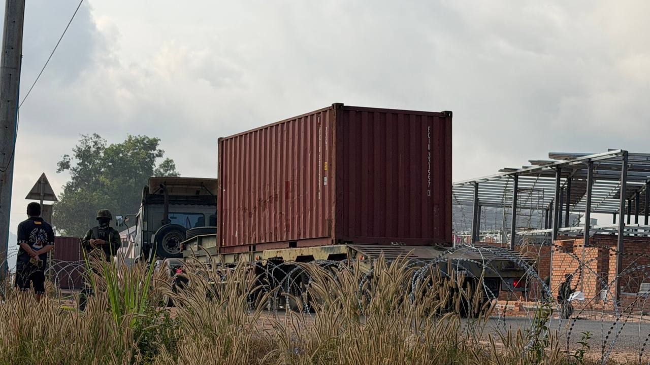 ទិដ្ឋភាពទូកុងតឺន័រ ដែលយោធាថៃ ទម្លាក់ព័ទ្ធយកដីកម្ពុជានៅថ្មដា និងការរាយបន្លាលួស តាំងពីក្រោយបទឈប់បាញ់ថ្ងៃទី២៧ ខែធ្នូ ឆ្នាំ២០២៥