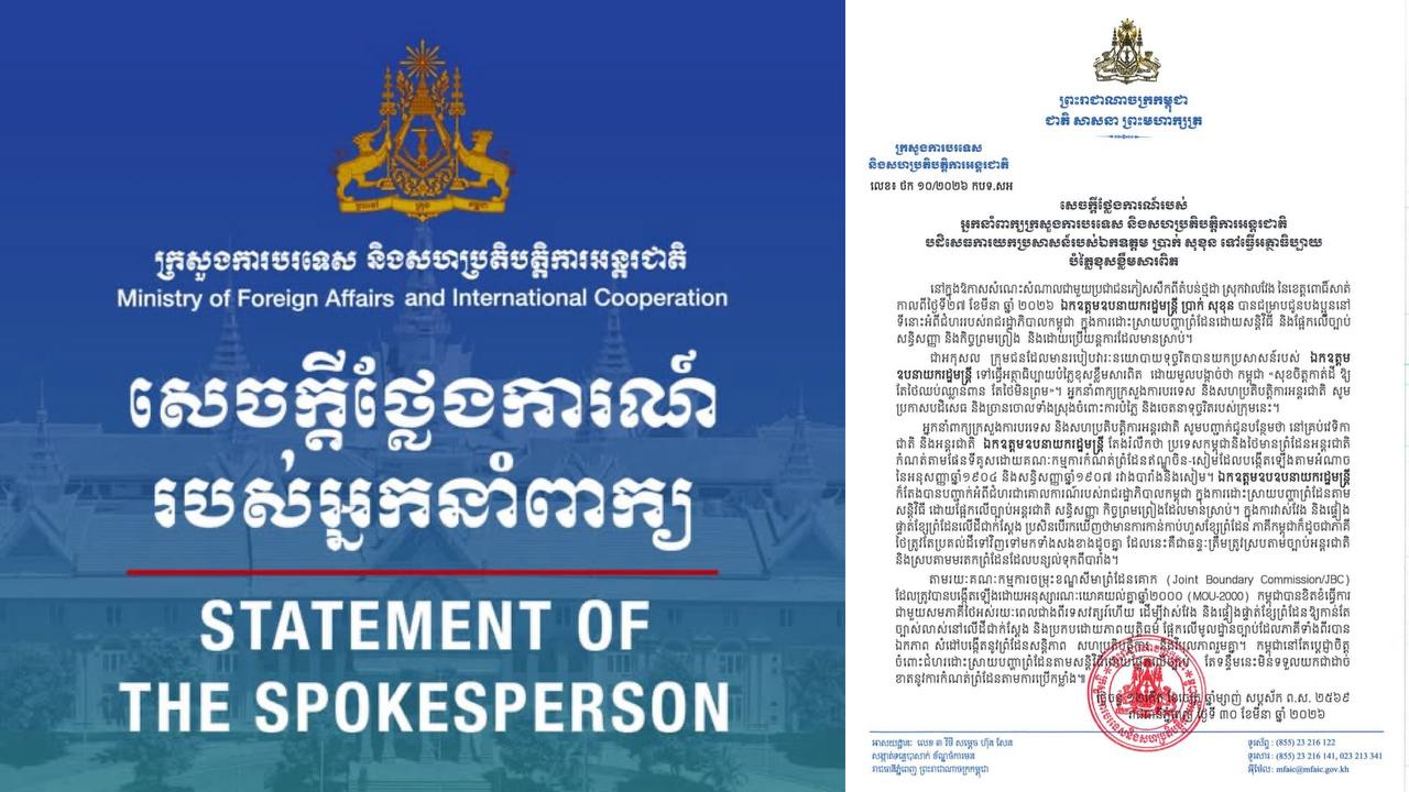 ក្រសួងការបរទេស ចេញសេចក្តីថ្លែងការណ៍ដិសេធការយកប្រសាសន៍របស់ឧបនាយករដ្ឋមន្ត្រី ប្រាក់ សុខុន ទៅធ្វើអត្ថាធិប្បាយបំភ្លៃខុសខ្លឹមសារពិត