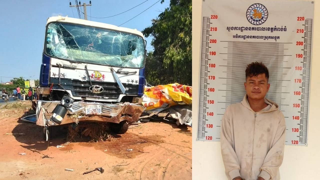 (កំពង់ធំ)៖ អ្នកបើករថយន្តដឹកស្វាយ ដែលបានរេចង្កូតទៅបុកអ្នកថ្មើរជើងបណ្តាលឲ្យស្លាប់៥នាក់យ៉ាងអាណោចអាធ័ម នៅភូមិជាយស្បៃ ឃុំកកោះ ស្រុកសន្ទុក ខេត្តកំពង់ធំ ត្រូវបានការិយាល័យចរាចរណ៍ផ្លូវគោក នៃស្នងការដ្ឋាននគរបាលខេត្តកំពង់ធំ បញ្ជូនទៅកាន់អយ្យការអមសាលាដំបូងខេត្តនៅថ្ងៃទី៣០ ខែមីនា ឆ្នាំ២០២៦ ដើម្បីចាត់ការបន្តតាមច្បាប់។