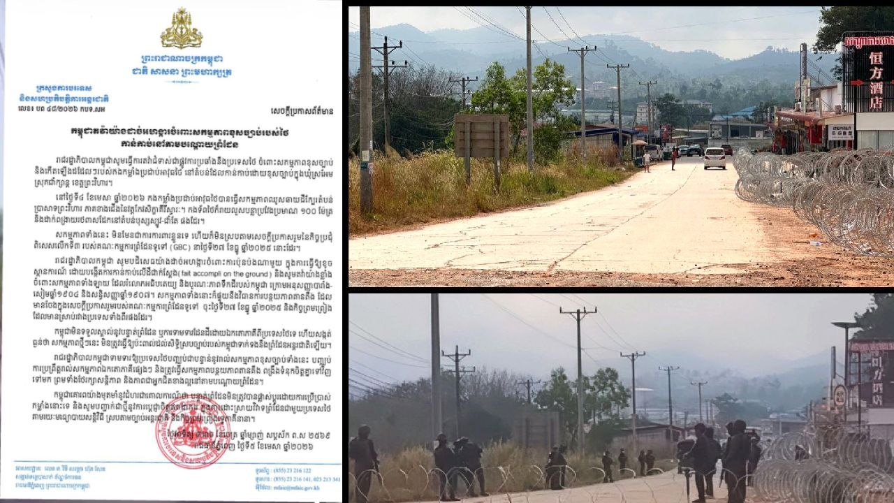 តាមសេចក្ដីប្រកាសព័ត៌មាន៖«រាជរដ្ឋាភិបាលកម្ពុជា ប្រកាសបដិសេធយ៉ាងដាច់អហង្ការចំពោះការប៉ុនប៉ងណាមួយ ក្នុងការធ្វើឱ្យខូច ស្ថានការណ៍ ដោយបង្កើតការកាន់កាប់លើដីជាក់ស្តែង (fait accompli on the ground) និងតវ៉ាយ៉ាងខ្លាំង ចំពោះសកម្មភាពទាំងឡាយ ដែលរំលោភអធិបតេយ្យ និងបូរណៈភាពទឹកដីរបស់កម្ពុជា ក្រោមអនុសញ្ញាបារាំង-សៀមឆ្នាំ១៩០៤ និងសន្ធិសញ្ញាឆ្នាំ១៩០៧។ សកម្មភាពទាំងនោះក៏ផ្ទុយនឹងវិធានការបន្ថយភាពតានតឹង ដែលមានចែងក្នុងសេចក្តីប្រកាសរួមរបស់គណៈកម្មការព្រំដែនទូទៅ ចុះថ្ងៃទី២៧ ខែធ្នូ ឆ្នាំ២០២៥ និងកិច្ចព្រមព្រៀង ដែលមានស្រាប់រវាងប្រទេសទាំងពីរផងដែរ»។