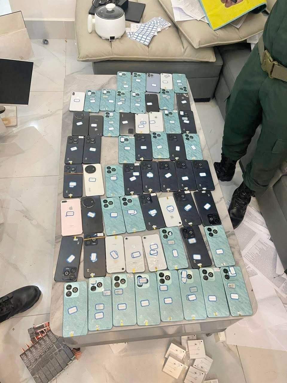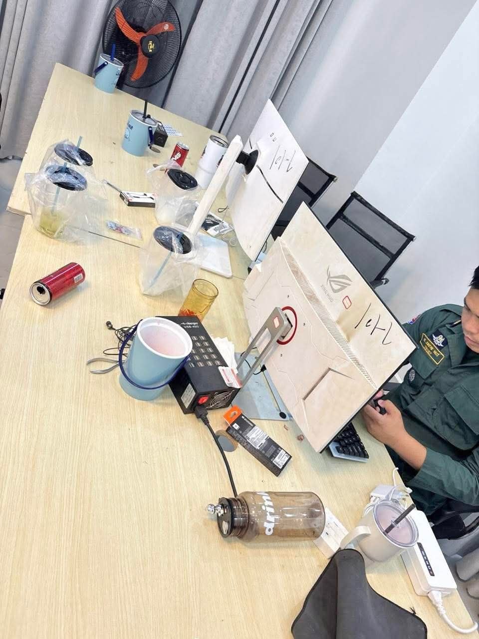 ដកហូត​វត្ថុតាងរួមមាន៖ កុំព្យូទ័រលើតុ ១០គ្រឿង, Laptop១គ្រឿង, ទូរស័ព្ទដៃ៦១គ្រឿង, ដាវ ២ដើម, រថយន្ត ០១គ្រឿង និង​សម្ភារៈ​ប្រើប្រាស់​មួយ​ចំនួន​ទៀត។