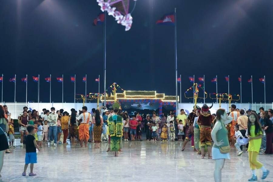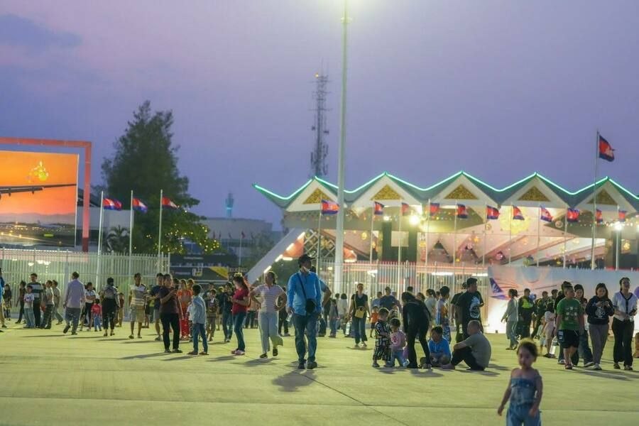 (រាជធានីភ្នំពេញ)៖ នៅថ្ងៃអាទិត្យ ១០រោច ឆ្នាំម្សាញ់ សប្តស័ក ពុទ្ធសករាជ ២៥៦៩ ត្រូវនិងថ្ងៃទី១២ ខែ មេសា ឆ្នាំ២០២៦នេះទិដ្ឋភាពនៅក្នុងបរិវេណសួនសាធារណៈព្រលានយន្តហោះពោធិ៍ចិនតុង ដែលបានរៀបចំតុបតែង និងបើកដំណើរការសាកល្បងថ្ងៃដំបូង ឱ្យបងប្អូនប្រជាពលរដ្ឋចូលលេងកម្សាន្ត នាឱកាសបុណ្យចូលឆ្នាំថ្មីប្រពៃណីជាតិខ្មែរ។